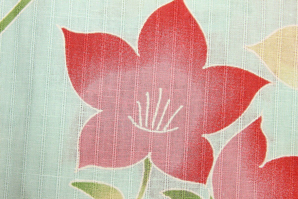 でも どこか優しい雰囲気がする 癒し系デザイン!! サイズ 着丈 : 165cm 袖丈 : 49cm 裄丈 : 68cm カラー ミントグリーン×赤・ベージュ 素材 綿85%麻15% 同梱に関してのご注意 商品写真に関してのご注意 できるだけ商品と同じ色目を出すよう努力しておりますが、表示画面等の違いから現物と色の違いが生じる場合がございます。